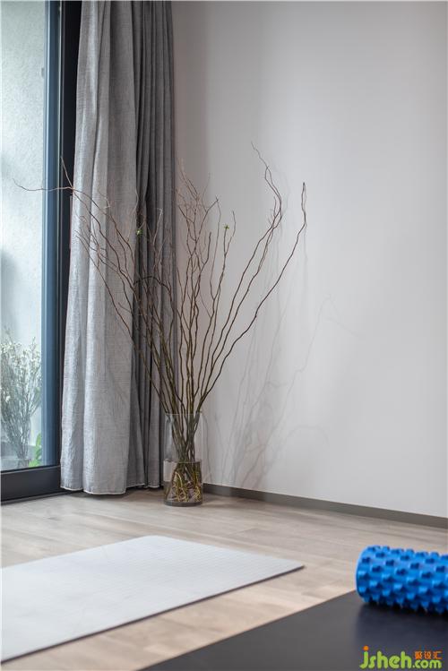 女主人平時喜歡做做瑜伽或者普拉提,所以特意設(shè)計了一間運動室。這里連接陽臺,做了立地窗的設(shè)計,讓主人可以一邊運動,一邊看著窗外的自然景色,更加的放松身心,享受生活。