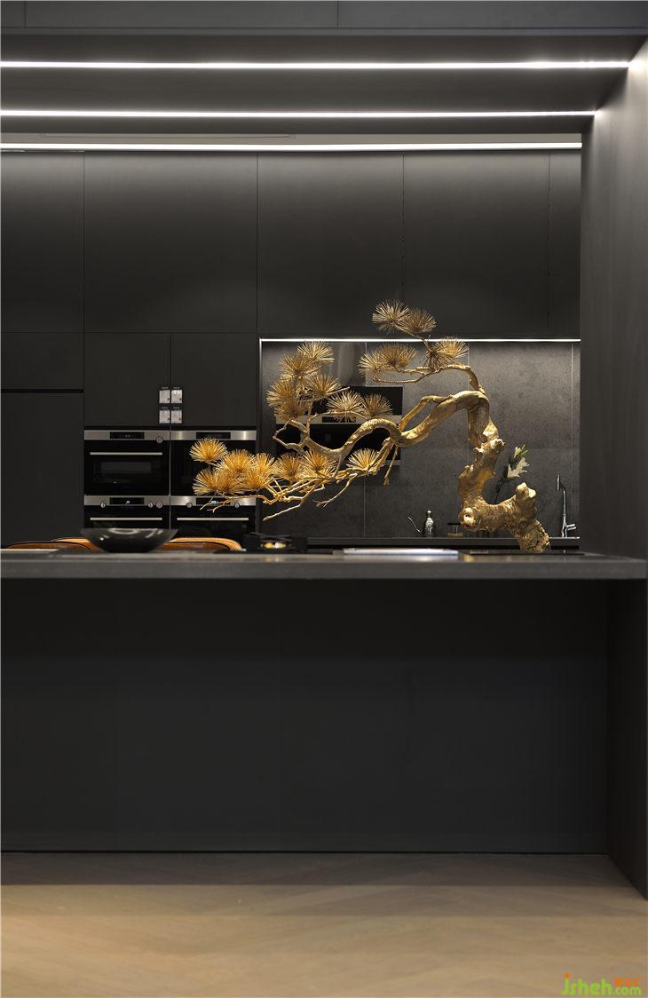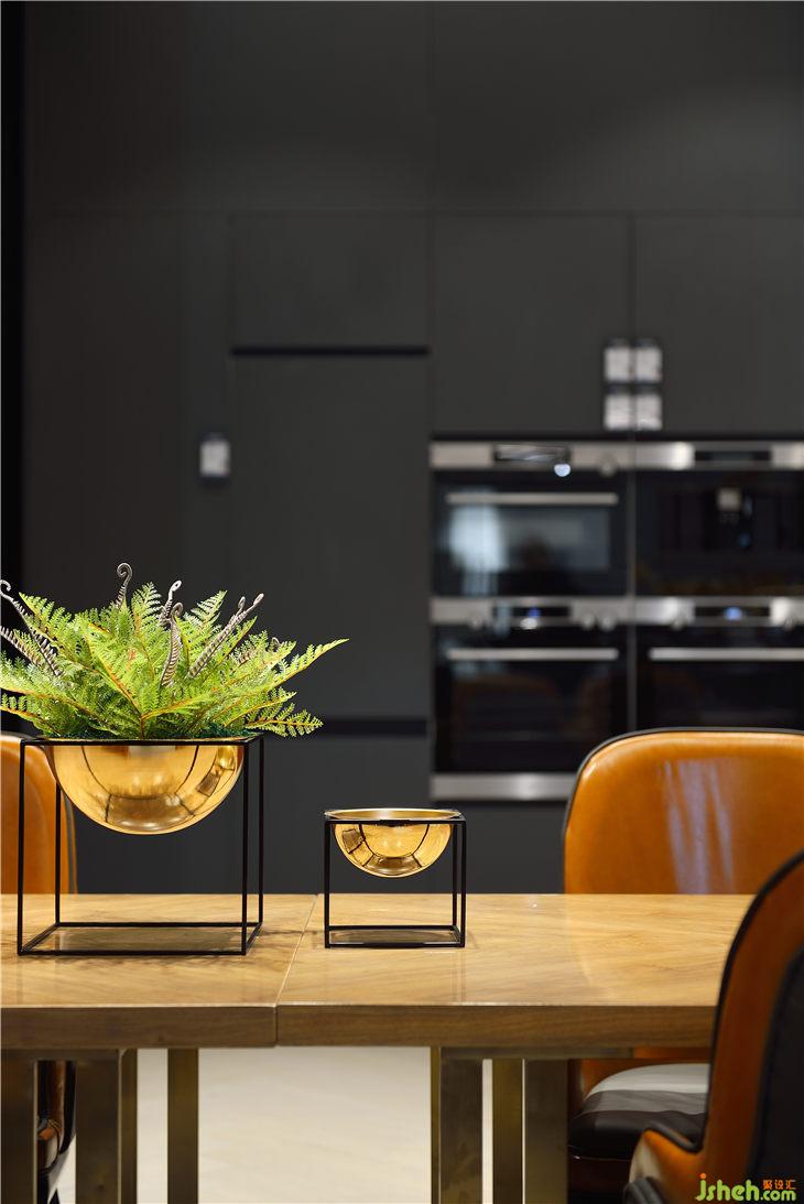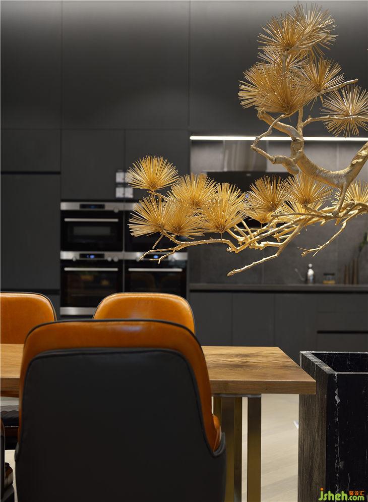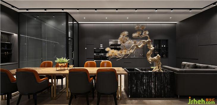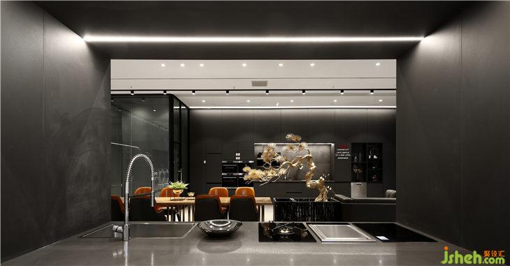 材料和色彩在整體設(shè)計中起著至關(guān)重要的作用,整體空間以黑色、灰色為主色調(diào),輔以金色、橙色,沉穩(wěn)中不失時尚。
