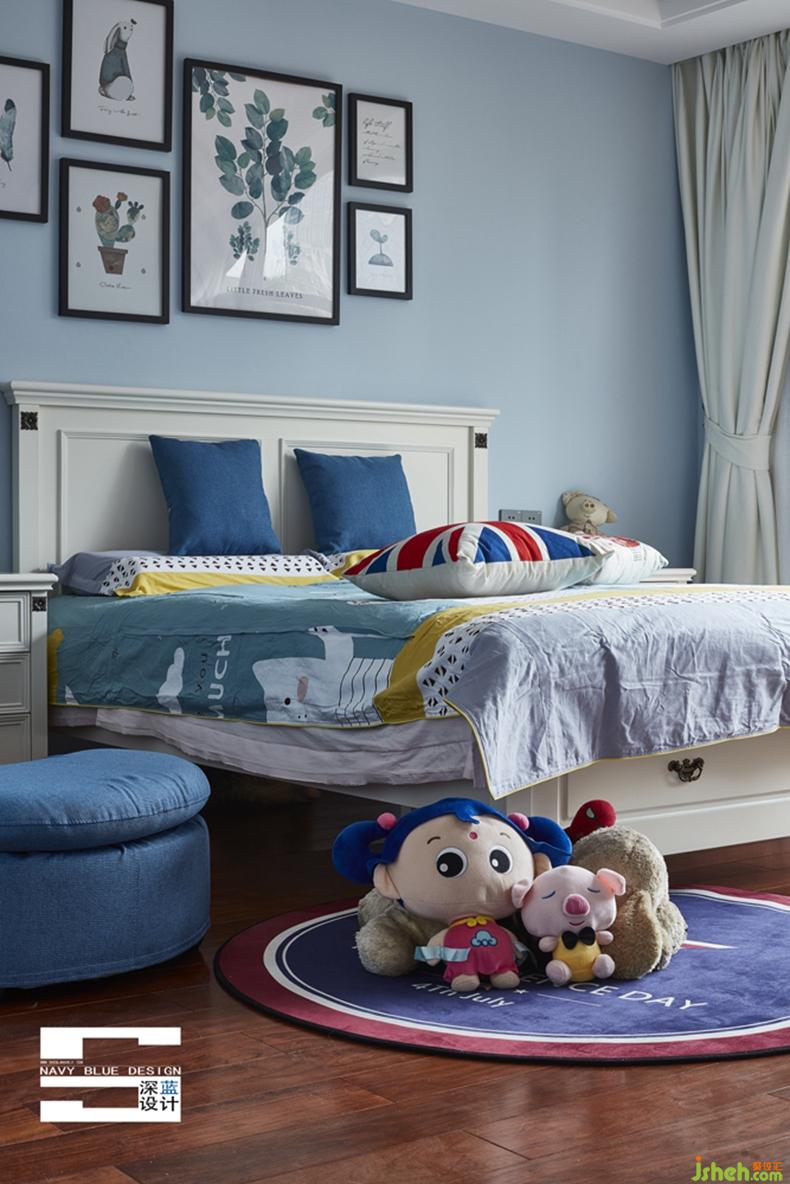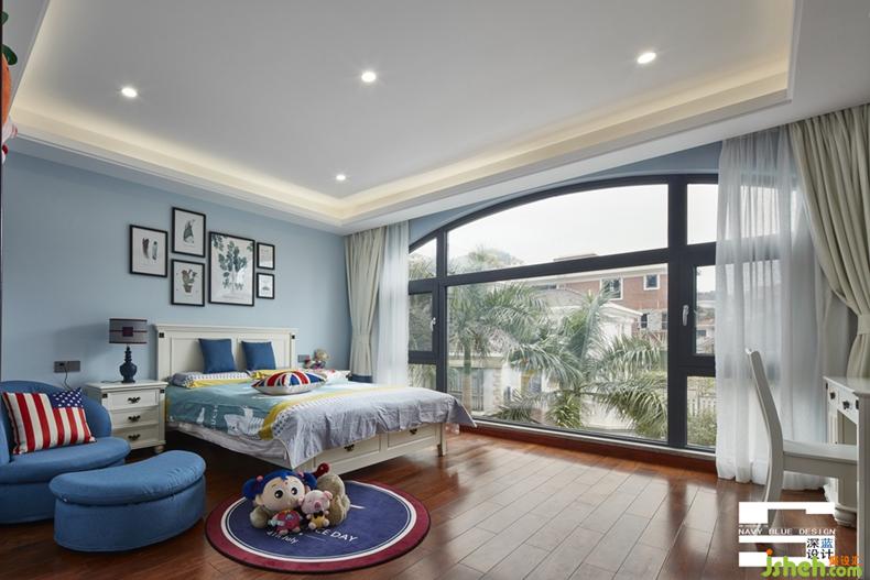 男孩房以藍色為主調(diào),寬敞明亮,業(yè)主姐姐很貼心的給兩個寶貝都添置了小沙發(fā)小地毯。雖有一起活動的空間,但在自己的房間里,也一樣可以學習、休息,玩耍。
