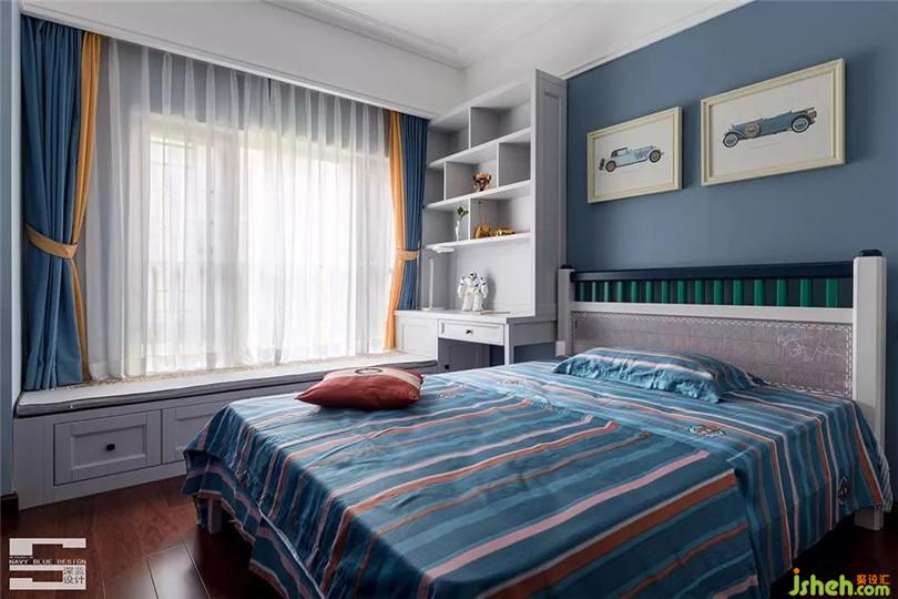 兒童房的光線非常充足,純凈的藍(lán)色墻紙搭配白色書桌,點(diǎn)綴多元素的童趣玩具,即寧靜又活潑。讓美麗的光線和生動(dòng)的色彩陪伴孩子成長。
