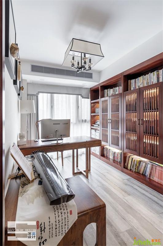 書(shū)房整面墻打造成深棕木書(shū)柜,把書(shū)柜門(mén)設(shè)計(jì)成格柵形式,使空間脫離沉悶氣氛,多了份活潑;素雅的燈具與掛畫(huà)中和空間的飽和度;“但識(shí)琴中趣,何勞弦上音”,撫琴而歌,是我國(guó)關(guān)于傳統(tǒng)美學(xué)的具體形式的最初印象之一,而古琴將中國(guó)傳統(tǒng)美學(xué)中對(duì)意境的追求發(fā)揮到極致;閑暇時(shí),喝一杯清茶,彈一曲古箏,感受典雅風(fēng)韻,修身養(yǎng)性。