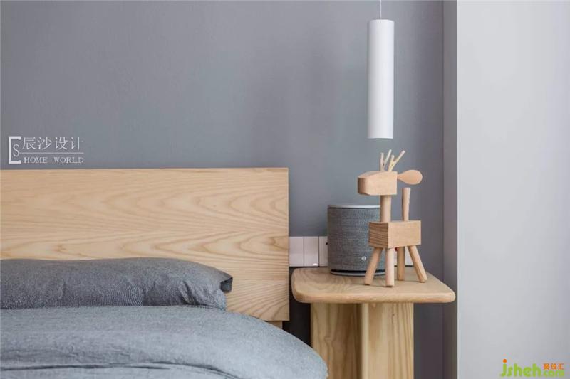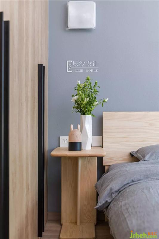 次臥就像一個(gè)小森林般自然、清新,原木床搭配淡藍(lán)色的床單,一旁的粉色干花,一呼一吸都是那么的柔和。墻上的卡通掛畫(huà)就像森林里的動(dòng)物,空間變得充滿活力。室內(nèi)設(shè)計(jì)師