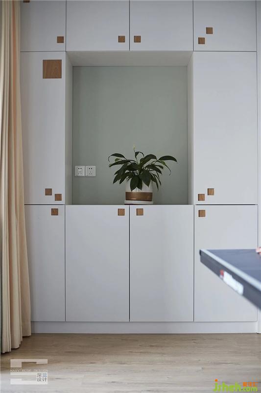 擁有健康的身體才是王道,回到家也不能松懈呀。在家打打乒乓球,既可健身強(qiáng)體、緩解壓力,也能和家人一起分享;我們賦予健身區(qū)娛樂性和功能性,兩邊是收納柜,滿足家里的收納需求。