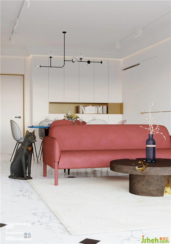 The space is dominated by large areas of light colors. In terms of material selection, we consider gypsum lines, metal and leather to enhance the brightness of the whole space. Horse hair and flannelette, when they are added with cloth of special technology, they will add a sense of value to the whole space, and to a certain extent, will add a breath of life to the space.