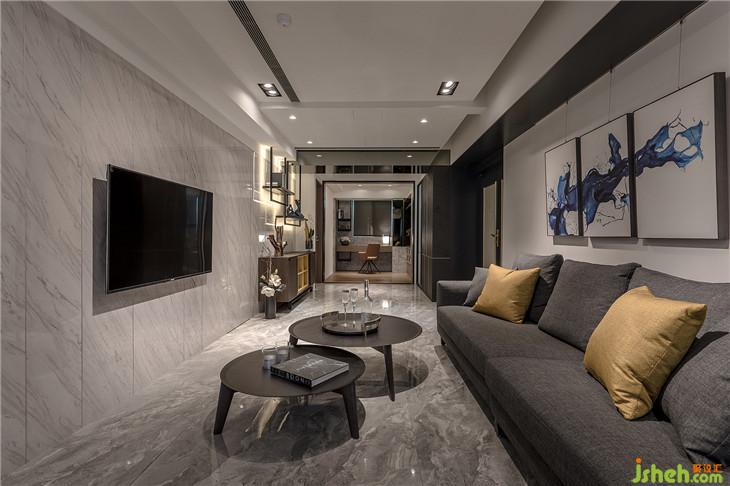 狹長(zhǎng)的客廳格局,透過(guò)電視墻面分割比例與淺色天然大理石的質(zhì)感呈現(xiàn)出屬于豪宅的尺度與氣場(chǎng)。室內(nèi)設(shè)計(jì)師