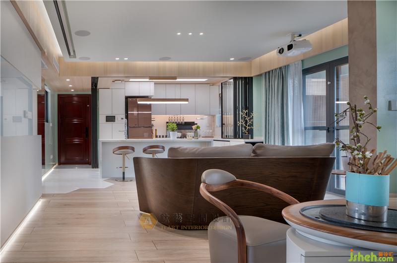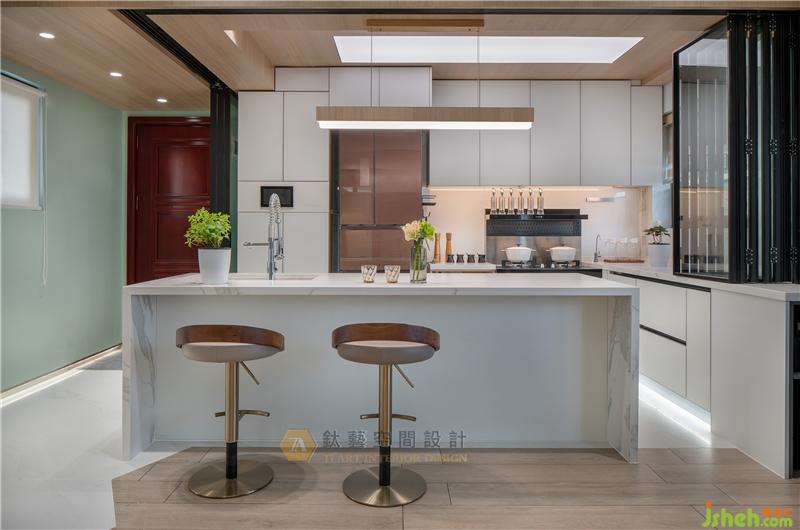 客廳、餐廳與廚房開敞連貫的設(shè)計,打造沒有界限的視野,讓記憶的容量更加飽滿鮮明,讓家的溫度更加真實溫暖。