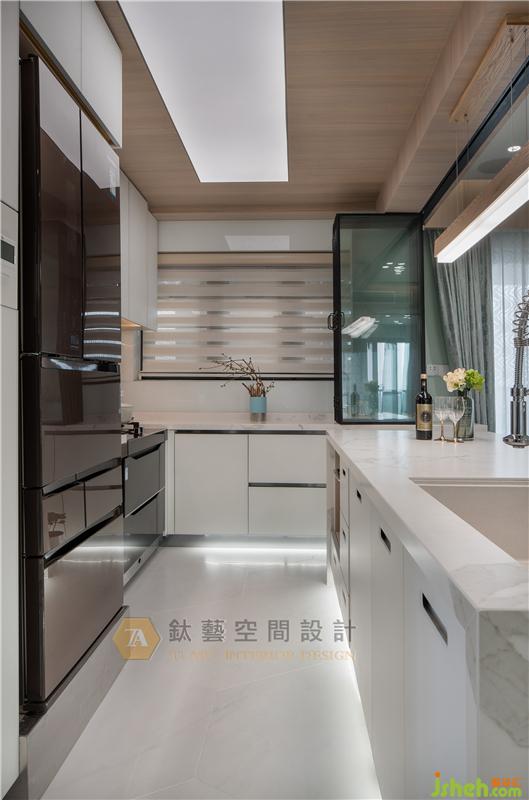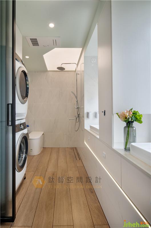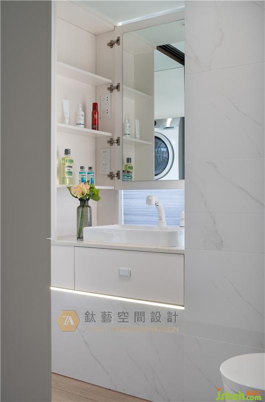 窗,留住光影虛實(shí)的痕跡,讓空間擁有不同層次的表現(xiàn),回應(yīng)使用者對(duì)于空間完美使用的渴望,衛(wèi)生間飄窗原只是作為簡(jiǎn)單的物件盛放處,經(jīng)過巧妙的變思后實(shí)現(xiàn)華麗變身,素凈的白色鏡柜與簡(jiǎn)雅而高品質(zhì)的潔具一體化設(shè)計(jì),大大節(jié)省了空間,增強(qiáng)了收納功能的同時(shí)鏡柜的設(shè)計(jì)還保留原有空間采光及窗外美景。裝修設(shè)計(jì)