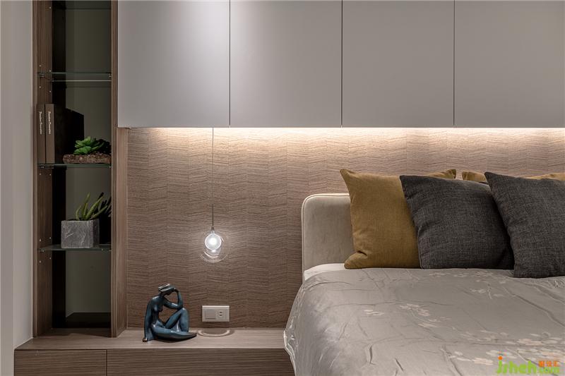 主臥室床頭特殊建材的發(fā)想:男主人喜歡浮潛,鈦藝團(tuán)隊將珊瑚礁的意象置入,讓客戶彷彿沉浸在海洋中。室內(nèi)設(shè)計師