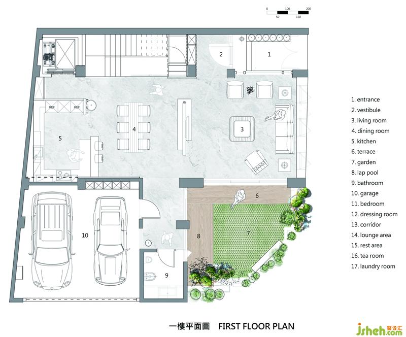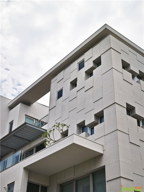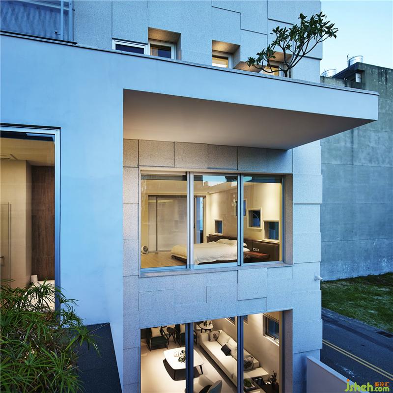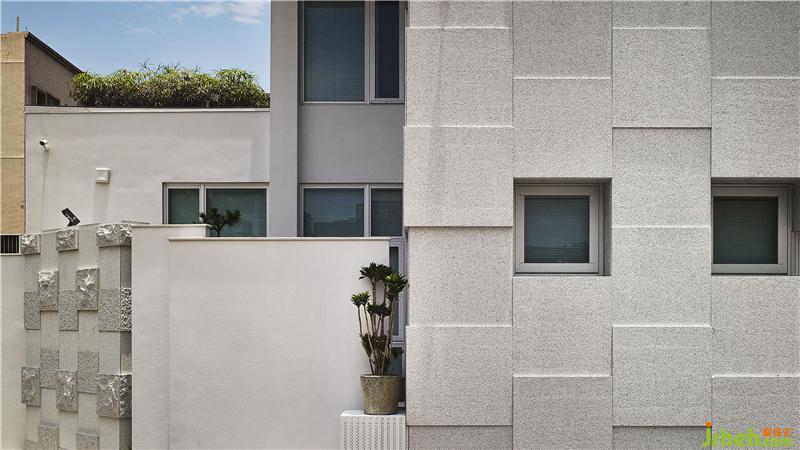 如雕塑般形體的外觀,經(jīng)過精密計算,讓花崗巖板的尺寸與窗戶尺寸相同,再利用石材不同的厚度,別墅設計呈現(xiàn)如雕塑般的外型。而燈光是建筑體重要的靈魂呈現(xiàn)。當夜幕降臨,由門窗透出的光線亦展現(xiàn)出別具特色的建筑樣貌,更悄悄體現(xiàn)設計者細膩而溫柔的設計風華。