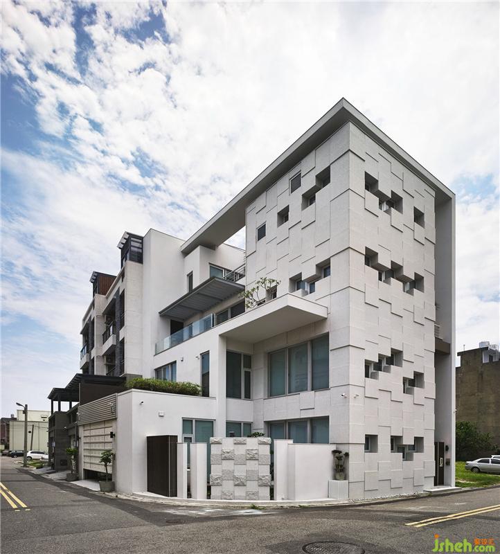 佇足于靜謐街角,一棟典雅如藝術品般的宅邸映入眼簾,很難不被它獨特的建筑架構所吸引。在建筑外觀的設計上,將生活機能垂直整合于東側,使西側呈現(xiàn)建筑之層次,打造一座深覆典雅的雕塑品。