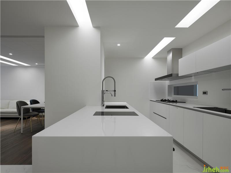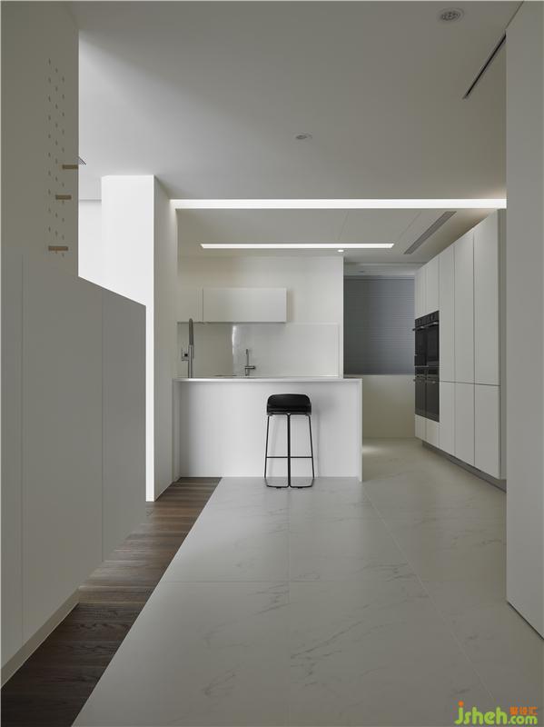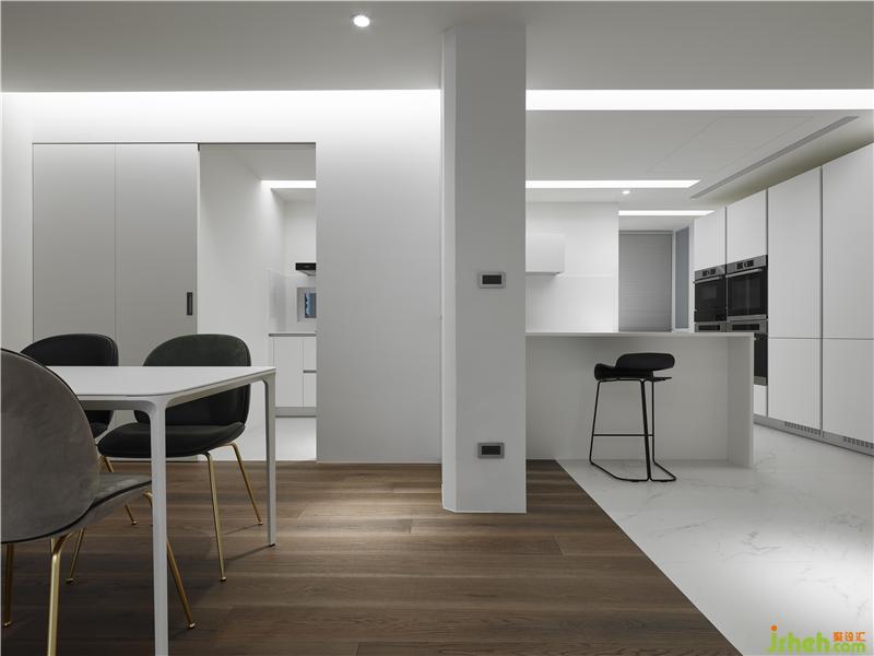 繼續(xù)前行,設(shè)計(jì)師為平日喜歡制做甜點(diǎn)的女主人與她的女兒,打造了一個(gè)開放式的白色廚房,家居設(shè)計(jì)將廚房以大尺度方式規(guī)劃最質(zhì)樸風(fēng)格,以廚房吧臺(tái)設(shè)計(jì)作為情感的楔子,讓濃濃溫暖親情,發(fā)散于通透無阻的空間環(huán)境之中。
