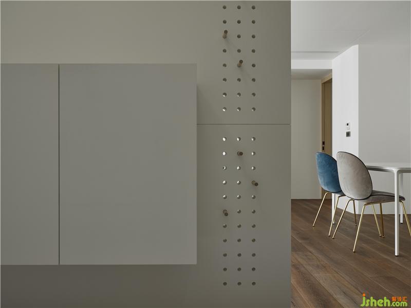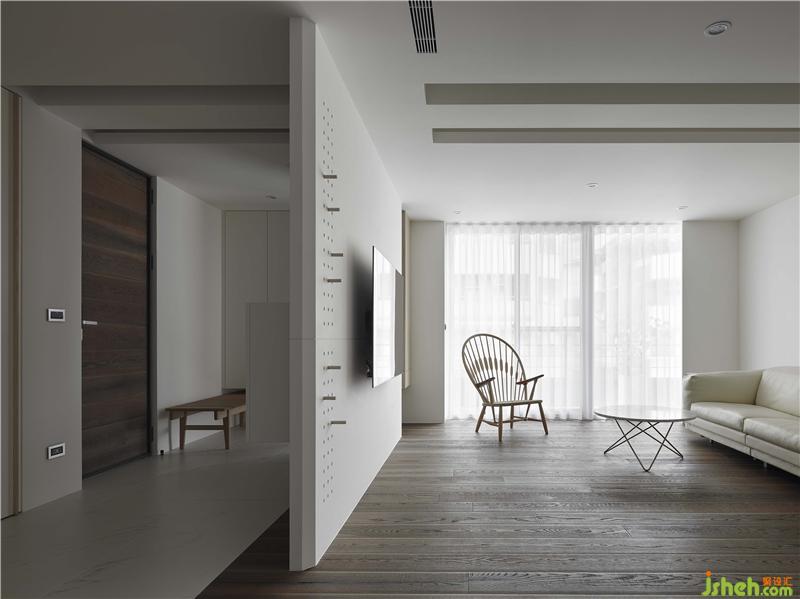 從大門緩步進(jìn)入玄關(guān),可以感受到,設(shè)計(jì)師將白色挹注與空間中,所營(yíng)造的清新、脫俗、輕盈的場(chǎng)域氛圍;不完全隔斷的玄關(guān)與客廳間的墻面,打破空間區(qū)域之間的界限,讓自然光線流淌于整個(gè)量體之間,為業(yè)主帶來舒適自然的身心感受。