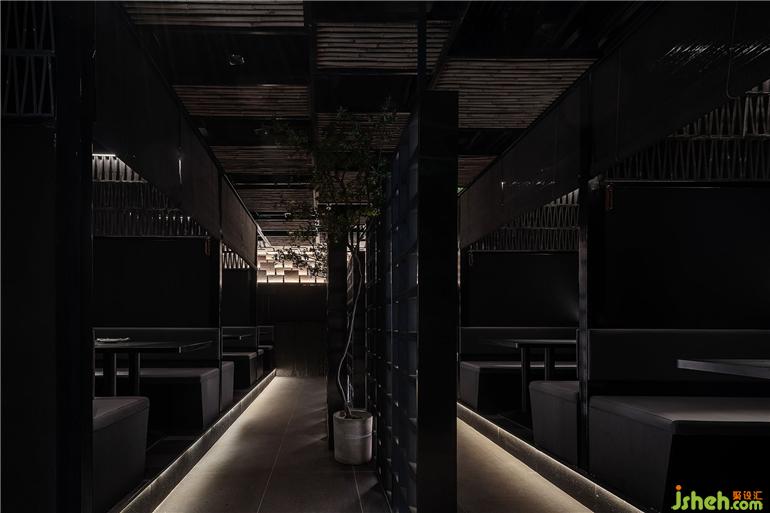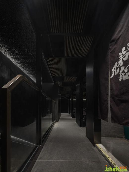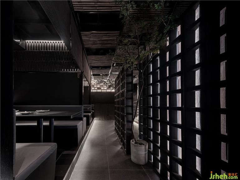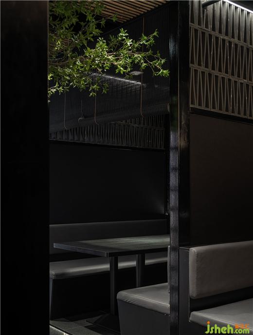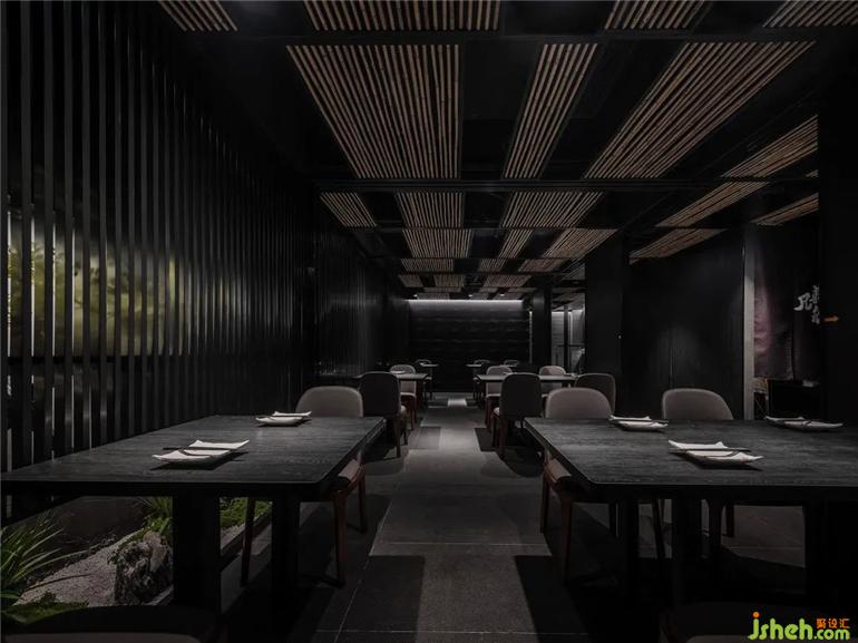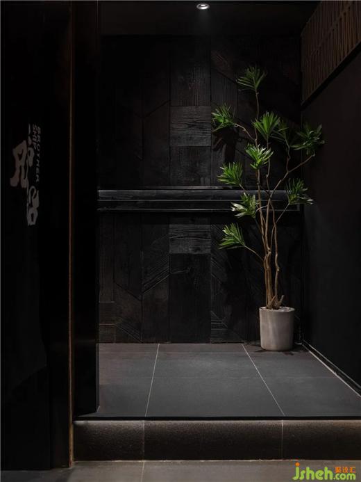 黑色,獨立專注,是生命中的純粹之色,經(jīng)久不衰而歷久彌新,低調(diào)卻又盡顯鋒芒。猶如潤物細(xì)無聲的日料手法,執(zhí)著專注,極凈內(nèi)斂,嚴(yán)謹(jǐn)而細(xì)致。設(shè)計將食材、烹飪、氣氛蘊藏在濃郁的清酒文化韻味中,在柔和而有層次的輔助光源下,讓食客享受美味的光與色。