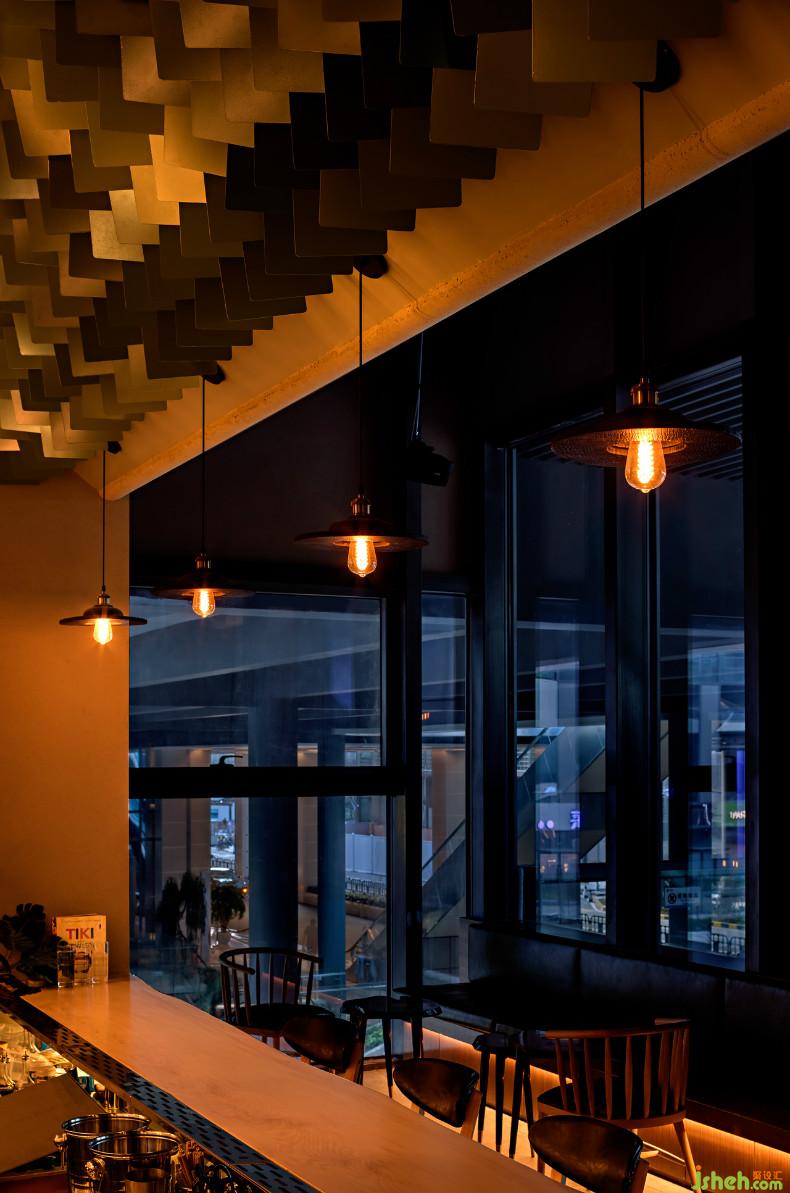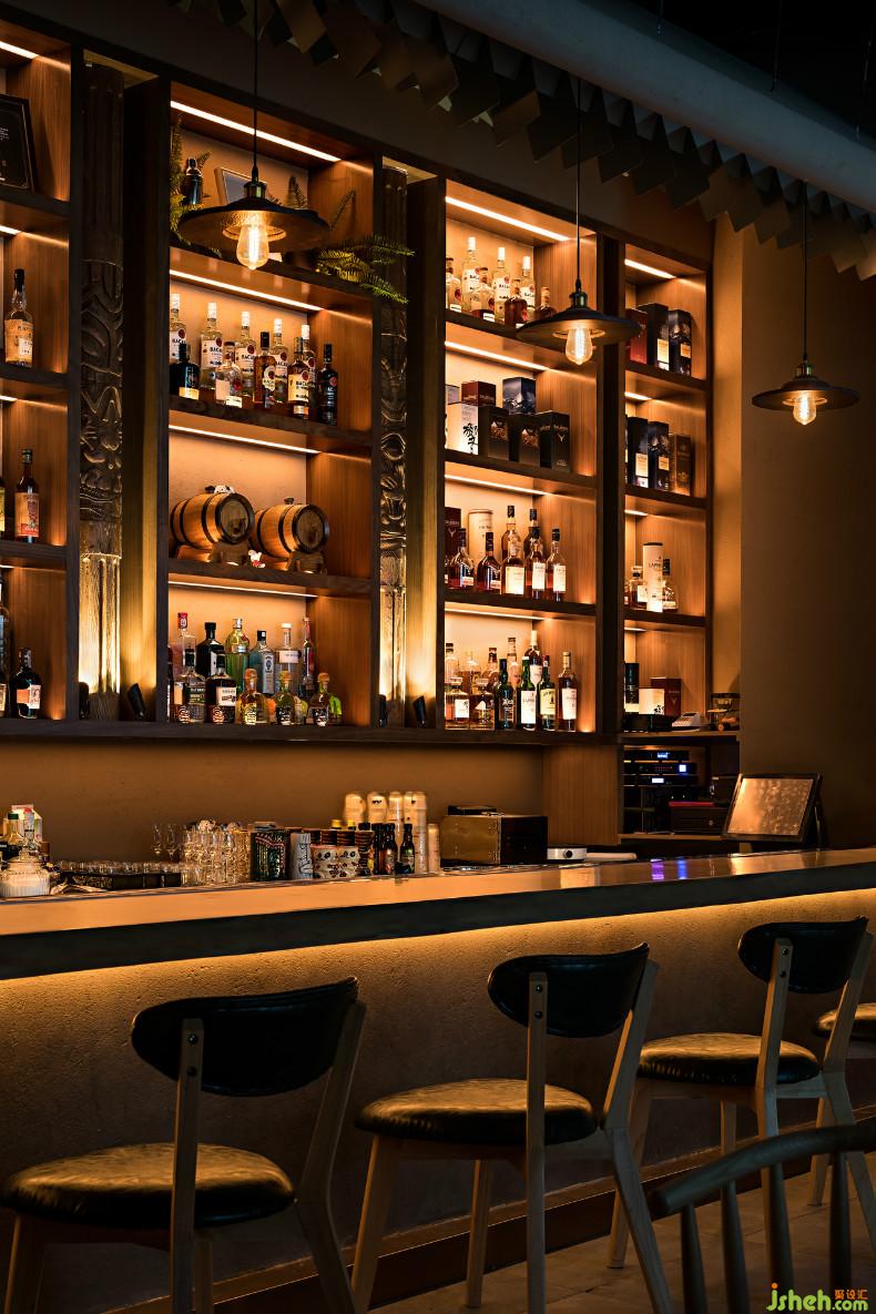 吧臺(tái)位置使用了圖騰做法,使整個(gè)空間具有一股濃濃的熱帶風(fēng)格的文化氣息。