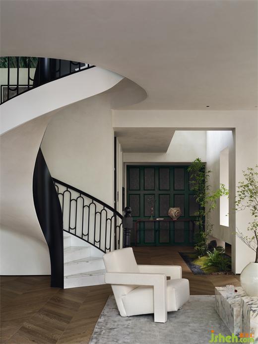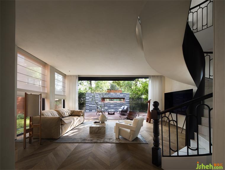 同樣在這一處條形空間的別墅處理上,打破原本格局,為業(yè)主重新規(guī)劃每一層的使用功能,同時用內(nèi)收的方式對所有窗戶進行了處理,為每處空間營造出相應(yīng)的氛圍。