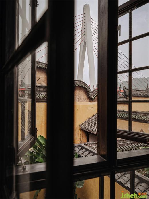會(huì)所取繁華之意,喚做“四海”。在 Canopée Café 的二樓,有穿過(guò)會(huì)館的金屬門。若驅(qū)車前來(lái),可經(jīng)電梯抵達(dá)會(huì)所的首層。一樣看得到長(zhǎng)江,看得到樹(shù)蔭,看得到湖廣會(huì)館剝落的墻漆和起伏的屋檐……