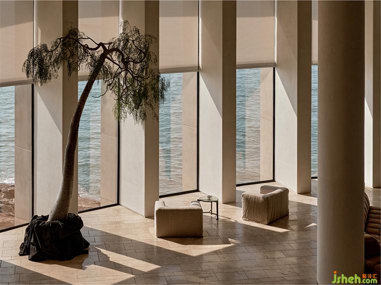 坐落于泉州南部半島海岸線上的精品酒店設計,酒店建在海邊礁石上,大堂還保留了原生風貌的大礁石,270度延伸海平線景致,依傍月牙沙灘,望水而棲。