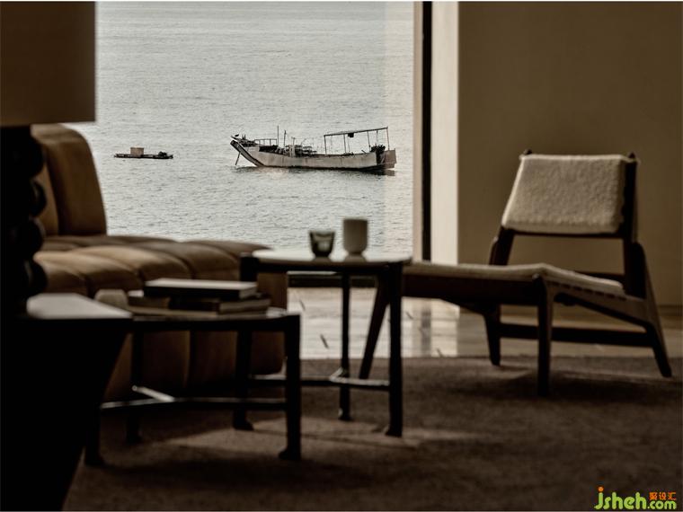 酒店設計延伸并保留至大堂的原始礁石,是被自然賜予的禮物,成就了空間的氛圍主題,通透的弧形場域,為人在進入的那一刻,感受時間沉淀的靜謐,設計將重點放在結構和材質上,縱向分隔的樓梯成為一組打開的畫卷,大體量的石塊成堆疊之勢,與海灘的天然礁石形成對話。石柱、石材、礁石形成新的秩序,保留check-in的功能之外,以退隱的方式凸顯質樸的自然,站在窗景前,如同泉州三灣向大堂展開擁抱,人們在此尋找庇護和獨處,收獲巨石之下肅穆的詩意之美。
