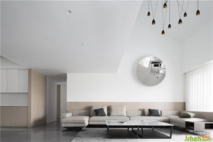 主要材料:啞光磚、白色乳膠漆、白色啞光漆、木飾面、木地板