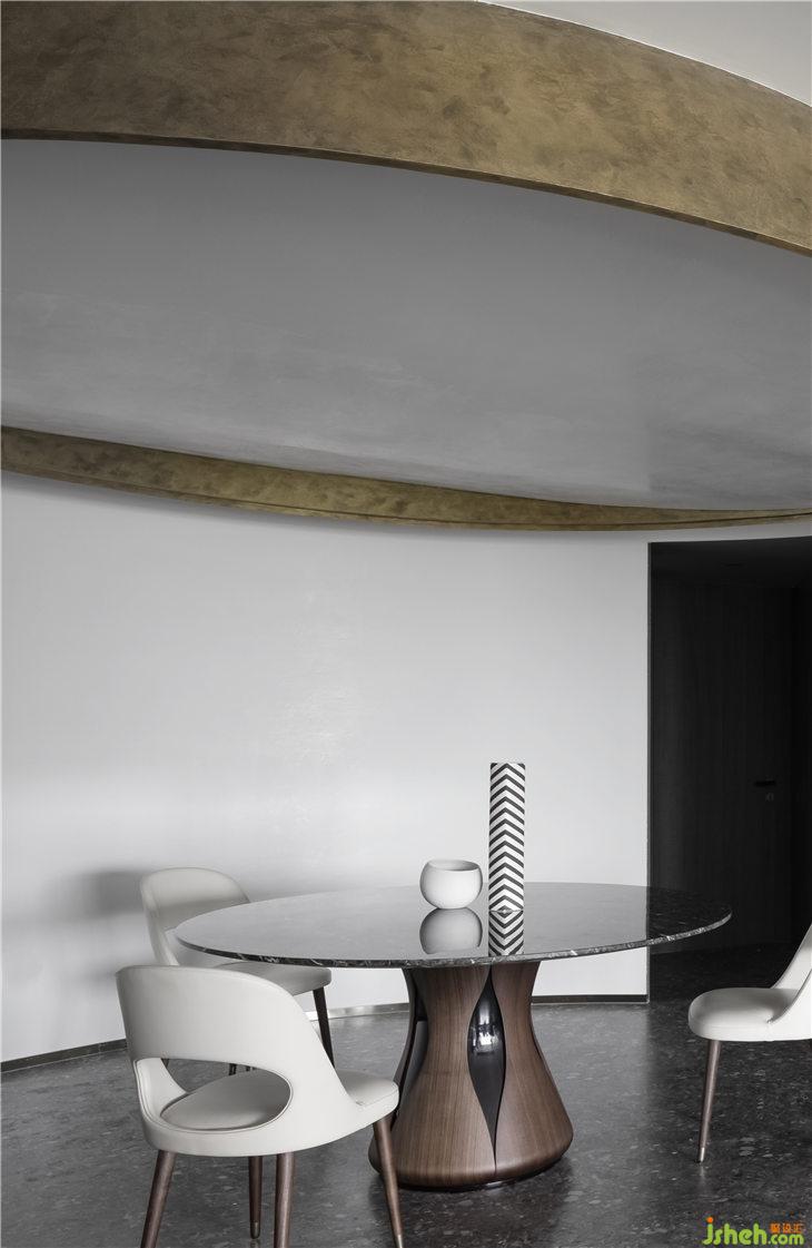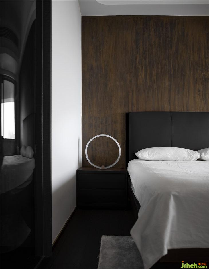 臥室的設(shè)計(jì)我們強(qiáng)調(diào)最簡(jiǎn)單的睡眠舒適性,通過圓形臺(tái)燈與弧形玻璃去呼應(yīng)客廳弧形的線條,背景的金色與空間整體理念搭配以強(qiáng)調(diào)設(shè)計(jì)的整體性。