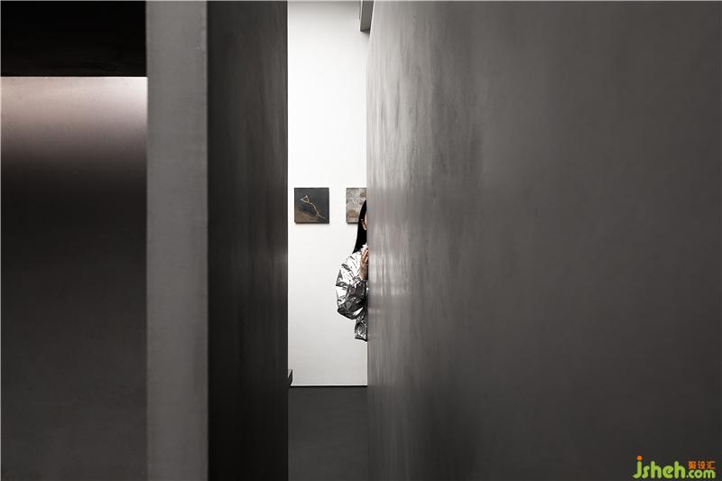 在材料的裝修設(shè)計上,我們將自然沙面質(zhì)感/凹凸金屬質(zhì)感與藍色的羊皮質(zhì)感進行碰撞,體現(xiàn)材料本身的張力,同時又將200多種豐富的材料樣板做了隱藏,從而低調(diào)的渲染材料在空間中簡潔的表現(xiàn)力,用矛盾來闡述一個關(guān)于漆的藝術(shù)展廳。