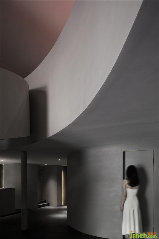 SOOYOU位于哈爾濱群力新區(qū),是一家主要接待女性顧客的美容院。入口的墻體,其微妙的曲面和弧形的建筑本體形成呼應,創(chuàng)造出一種窺視的另類視角,暗示著空間的神秘存在。