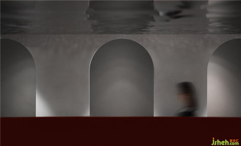 幾何形于弧線的組織,構(gòu)成了空間豐富的表情,于視覺(jué)錯(cuò)像。整體空間用守規(guī)矩的方體進(jìn)行闡述,頂面以及更衣間的弧形門洞打破了空間的平靜,并且給空間帶來(lái)了女性調(diào)皮的性格。夾層只有2.2米的高度,裝修設(shè)計(jì)空間采用波紋鏡面質(zhì)感,解決空間壓抑的條件,模糊了空間的界限。