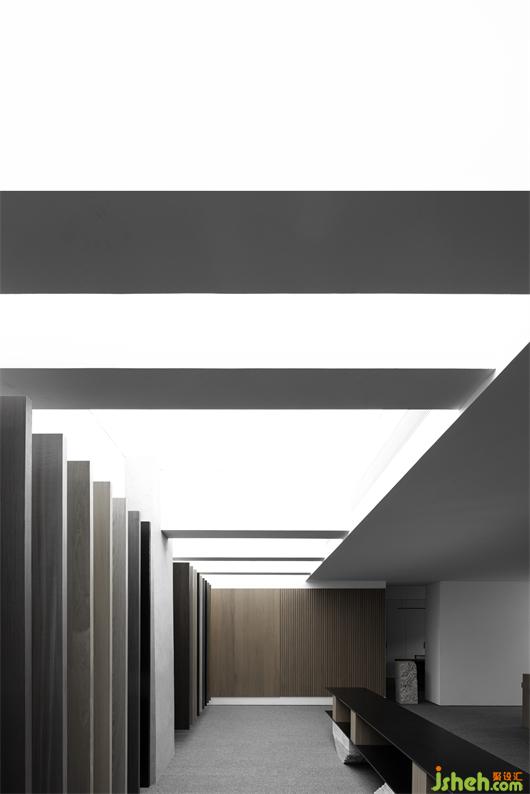 集恩在潮汕經(jīng)過(guò)5年的沉淀,與潮汕地區(qū)設(shè)計(jì)師已經(jīng)有了互動(dòng)的基礎(chǔ),同時(shí)也讓市場(chǎng)對(duì)梵品木飾面有了一定程度的認(rèn)知,艾克建筑認(rèn)為這并不是一個(gè)開(kāi)辟新市場(chǎng)的行為,而是如何穩(wěn)固市場(chǎng)與讓市場(chǎng)進(jìn)行裂變的行為。展廳設(shè)計(jì)中并不是要體現(xiàn)木飾面本身,主要的是要讓市場(chǎng)知道集恩能做什么,一個(gè)從賣(mài)產(chǎn)品到定制與項(xiàng)目執(zhí)行的行為差異,這是在展廳的設(shè)計(jì)中最重要的環(huán)節(jié)。