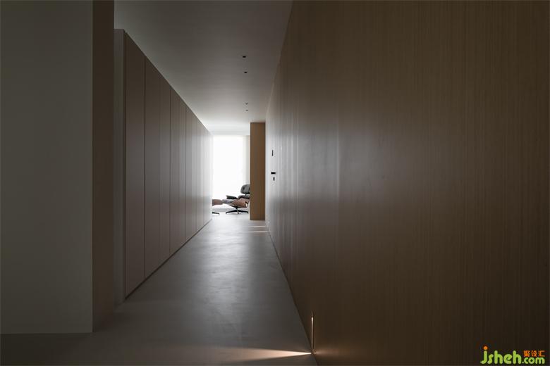 The materials are mainly characterized by soft hues and textures. The beige paint, micro-cement flooring and wood are combined, generating clean, natural visual effects while also conveying the warmth of materials. When the feet touch the micro-cement flooring, the occupants can feel the natural textures and peacefulness. The floor of the bedrooms is covered with wooden boards, which inject warmth to the sleeping space.