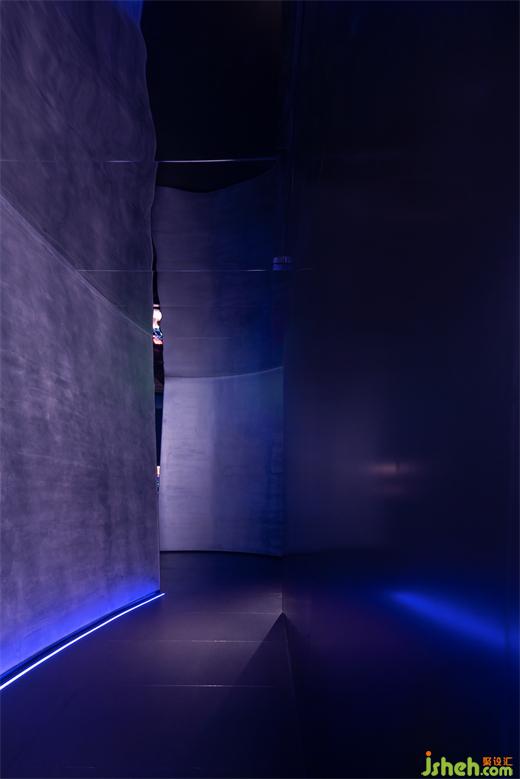 空間察覺有融入爵士和朋克經(jīng)典的藍(lán)調(diào),但設(shè)計(jì)的表露上并沒有刻意強(qiáng)調(diào)爵士與朋克的元素,藝術(shù)餐廳設(shè)計(jì)而是通過畫面的構(gòu)成和內(nèi)在光色節(jié)奏營造出一種冷調(diào)新潮的獨(dú)特氣質(zhì)。游離的墻體與迷離的光圈交界。