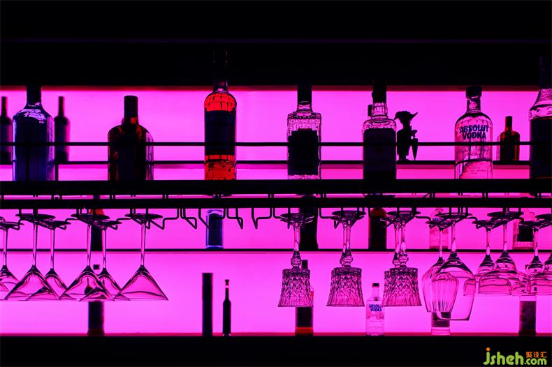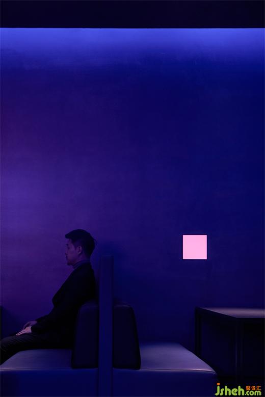 吧臺區(qū)域的情緒,迷幻的光影設(shè)計(jì)也更加大膽與大面的鋪陳,其目的是為了將場域情緒的力量擴(kuò)大化,其爵士與朋克的內(nèi)在精神力量迷幻,熾熱的流動在空間,但又緩慢悠揚(yáng)且激進(jìn)的浪漫節(jié)奏。