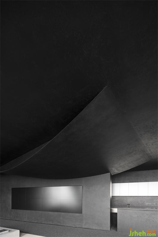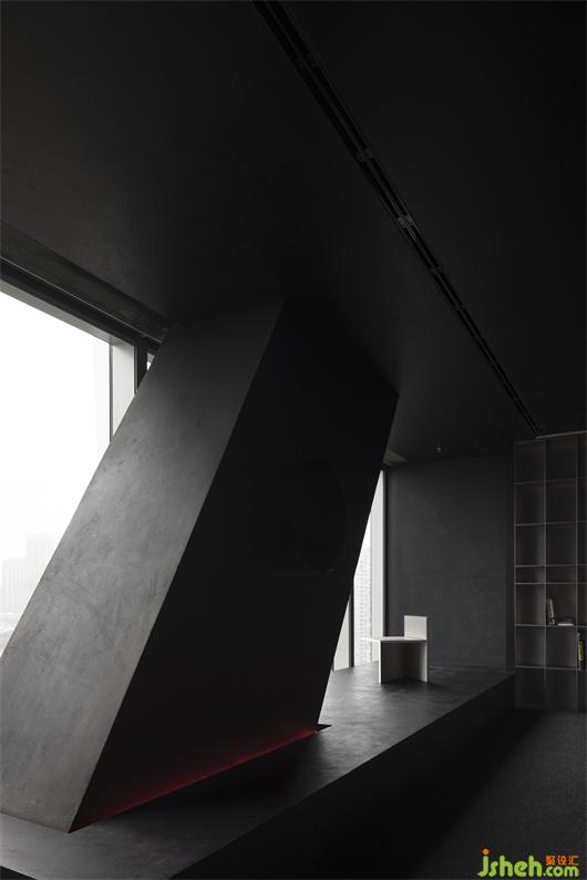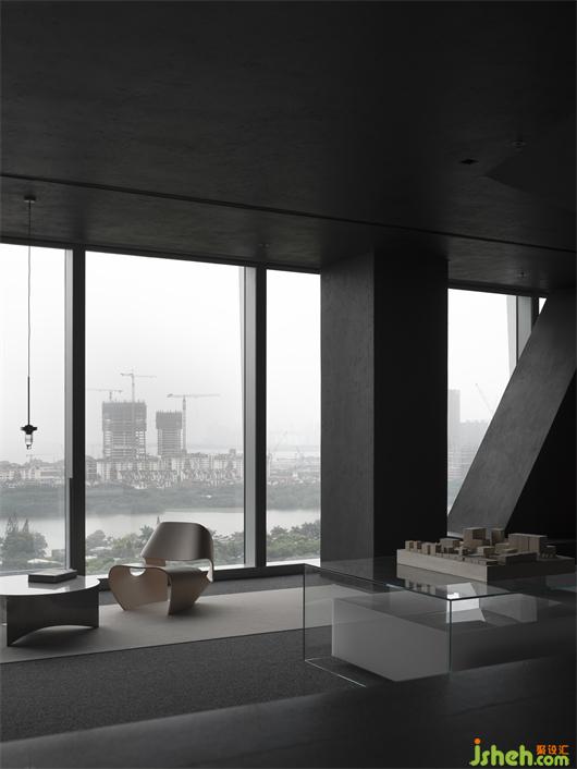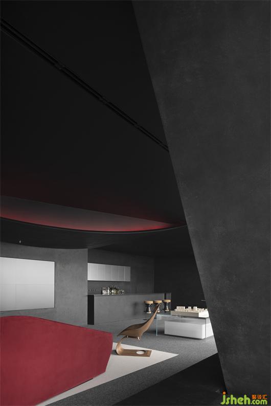 暗黑色系的辦公室,這是一個(gè)具有爭(zhēng)議的狀態(tài),另我們驚喜的是,這樣的暗黑系,辦公會(huì)所設(shè)計(jì)更好地將視覺引到室外的美景,更好的與自然進(jìn)行互動(dòng)。簡(jiǎn)潔的材料體系,黑色洞石的效仿意大利藝術(shù)漆,體現(xiàn)了空間的份量感,德國(guó)芬尼特地毯的運(yùn)用,強(qiáng)調(diào)了舒適度、吸音及特殊的地面質(zhì)感,不銹鋼與燈光的結(jié)合,強(qiáng)化了空間的科技感與場(chǎng)景感。