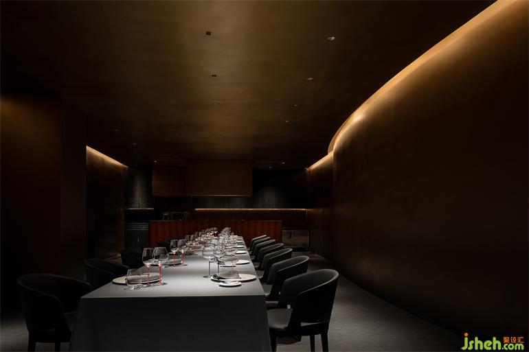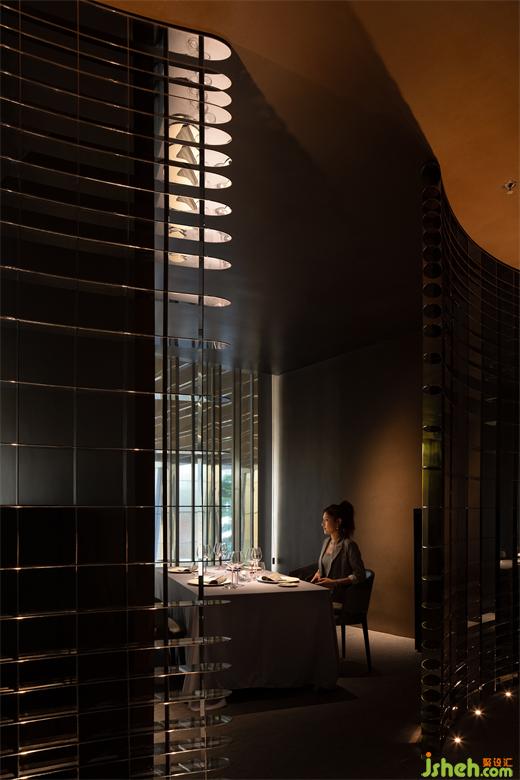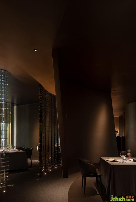 空間處于一種半封閉的狀態(tài),強調(diào)空間私密性的同時,餐廳設計讓人在空間中游走時產(chǎn)生不同的場景與情緒,幽暗的光環(huán)境強調(diào)了人在空間的事件才是設計核心。一種新的享樂主義。