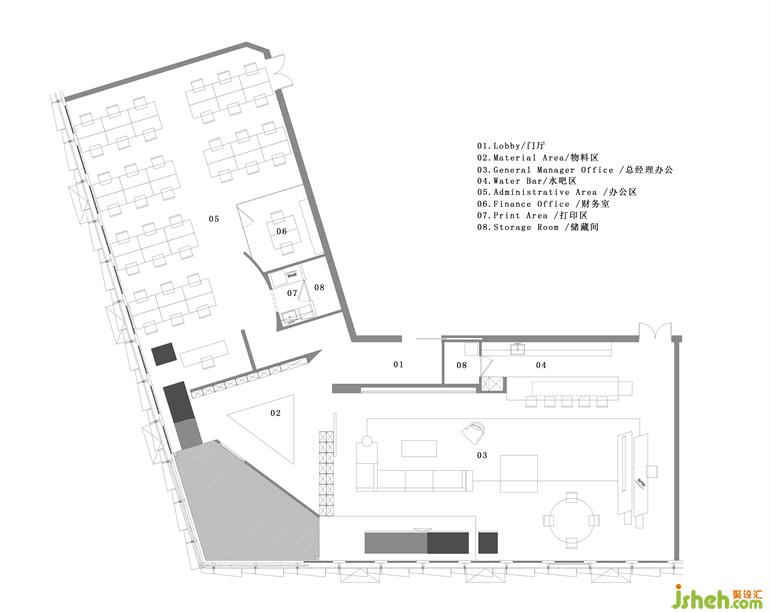 接待、物料展示、與辦公區(qū)用最簡潔的方式構(gòu)成了艾克建筑的辦公室,辦公會所設(shè)計入口處形成了迂回的動線,摒棄大氣的前臺接待,讓辦公室整體保持一種更為私密的環(huán)境與神秘感。這是一種隱性的美好!