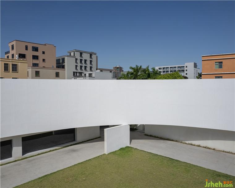 回藝術(shù)中心由未來(lái)愿景創(chuàng)辦,是汕頭最新設(shè)立的商業(yè)藝術(shù)機(jī)構(gòu)與管理咨詢(xún)團(tuán)隊(duì)。藝術(shù)中心坐落于十一合藝術(shù)村的主要干道上,曾經(jīng)沉寂的村落,人們出海下田,靠天吃飯,隨著生活水平不斷提高,村民們陸續(xù)搬出舊屋,在新分配的土地上建起幾層樓高的方塊狀樓房,這是一個(gè)時(shí)代變遷的印記,舊屋與新房穿插構(gòu)成,藝術(shù)中心設(shè)計(jì)的出現(xiàn)為藝術(shù)村的形象增添了藝術(shù)色彩。