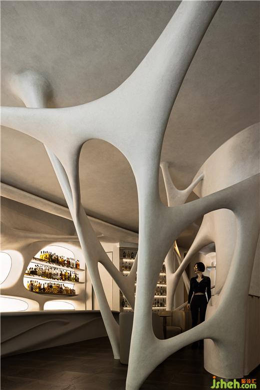 This is AD ARCHITECTURE’s first project that combines the functions of a cafe and a whiskey bar.The project is located in the Shenzhen OCT-Loft Creative Culture Park. Shenzhen is a city full of possibilities, and the Creative Culture Park is a gathering of people with creative output. The Park is surrounded by a cultural and artistic atmosphere, with all kinds of renovated factories, lush greenery and old trees. All these inspired the design team to think about how to create impact and impressionfor the bar, to attract customers and empower its commercial operation.