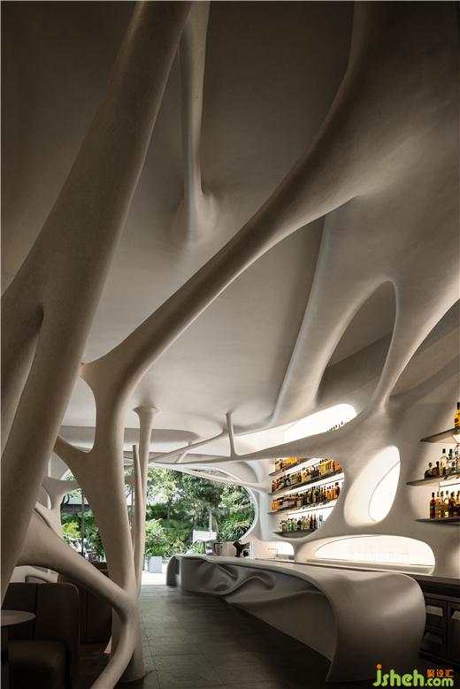 這是艾克建筑首個(gè)咖啡吧與威士忌吧的空間探索。Tan90°酒吧設(shè)計(jì)項(xiàng)目位于深圳華僑城創(chuàng)意產(chǎn)業(yè)園區(qū)內(nèi)部。深圳是一個(gè)充滿可能性的城市,創(chuàng)意產(chǎn)業(yè)園更是聚集著一個(gè)具有瘋狂思維輸出的群體,整個(gè)創(chuàng)意園籠罩著一層文藝與藝術(shù)的氛圍,各式各樣改造的廠房,郁郁蔥蔥的綠化與自然的古樹(shù),這一切都引導(dǎo)著我們?nèi)ニ伎?,如何制造沖擊與記憶是商業(yè)引流與復(fù)購(gòu)的重要手段。