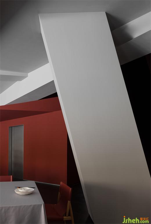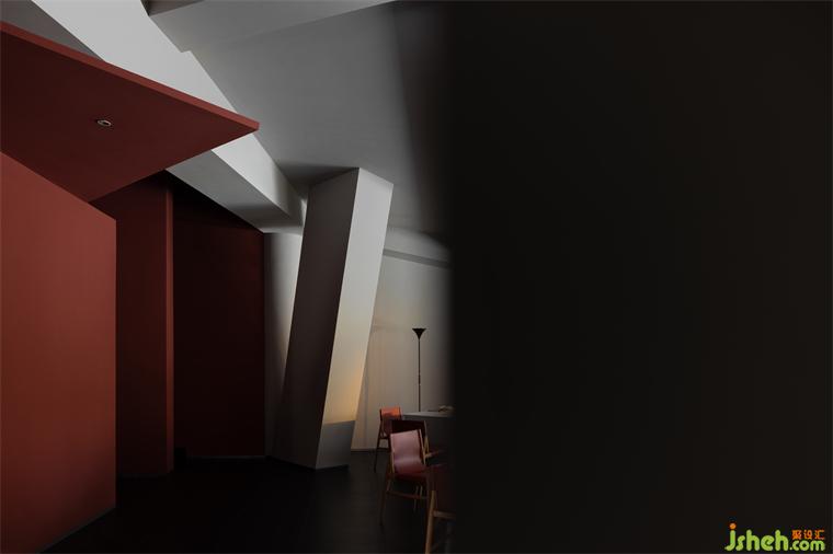 The interior colonnade forms the corridor to create spatial permeability. Except for meeting the dining needs, the space achieves a strong sense of geometric order in the peaceful red palette, and the ceiling light boxes emphasize the deconstruction of space through geometric transformations, creating a tension that integrates geometric structures. The combination of red paint, wood color, and gray bricks symbolizes the collision between modern and traditional elements, and the charming coexistence of the old and new.