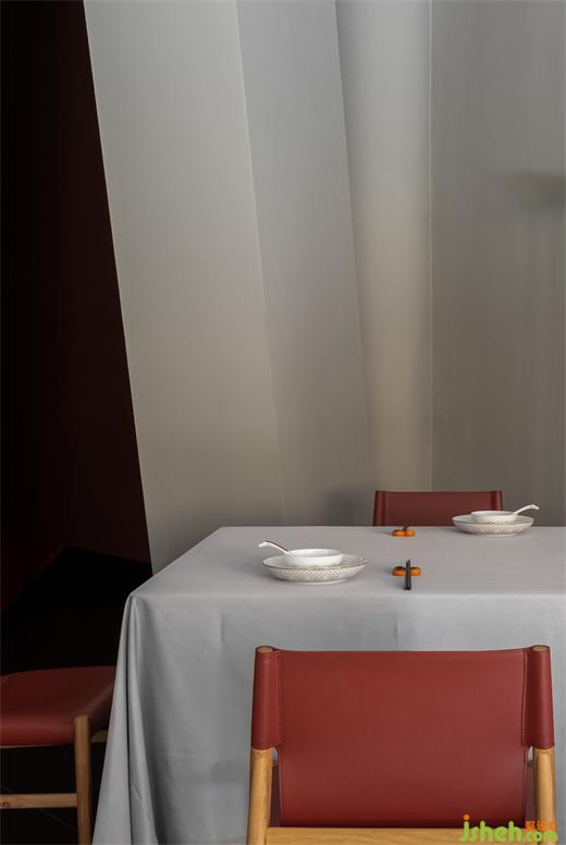 A strong dining vibe conveyed by smell permeates the space, offering immersive visual, taste and auditory experiences. The large area of geometric divisions and blank surfaces in interior design create a pretty space form that dialogues with the red tone symbolizing Chaoshan cuisine. AD ARCHITECTURE believes that smell, as an explicit experience of the five senses compatible with space, shall be highlighted as a visible presence in space.