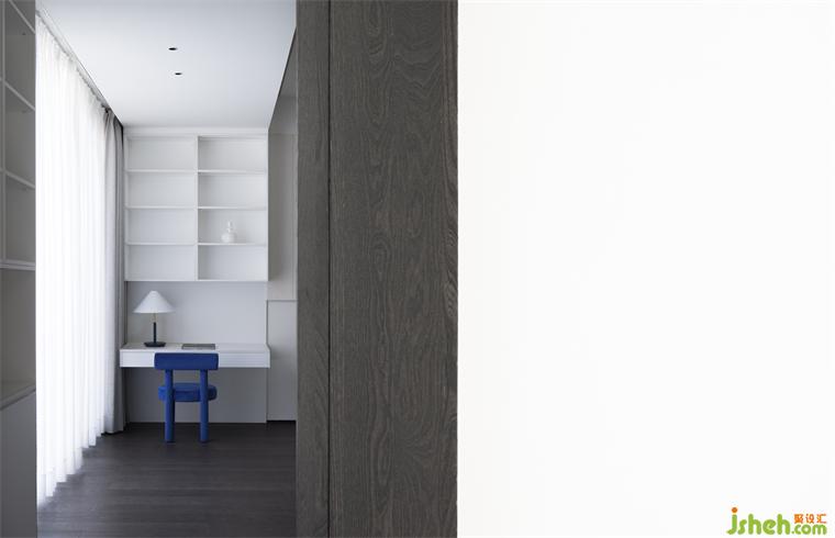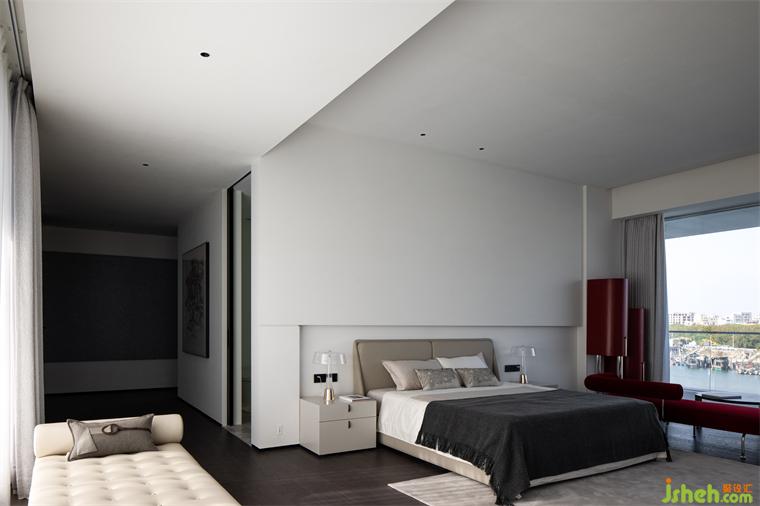空間的存在靜雅。盡管空間本身體現(xiàn)了設(shè)計(jì)的介入,但和諧與謙遜也是空間中該有的樣子,其表現(xiàn)是克制的。與此同時(shí),這種克制表現(xiàn)在設(shè)計(jì)師的行為本身,極簡豪宅設(shè)計(jì)即給予家的主人更多自己的空間。這是一種非完整的完整狀態(tài),也是有延續(xù)性的趣味。