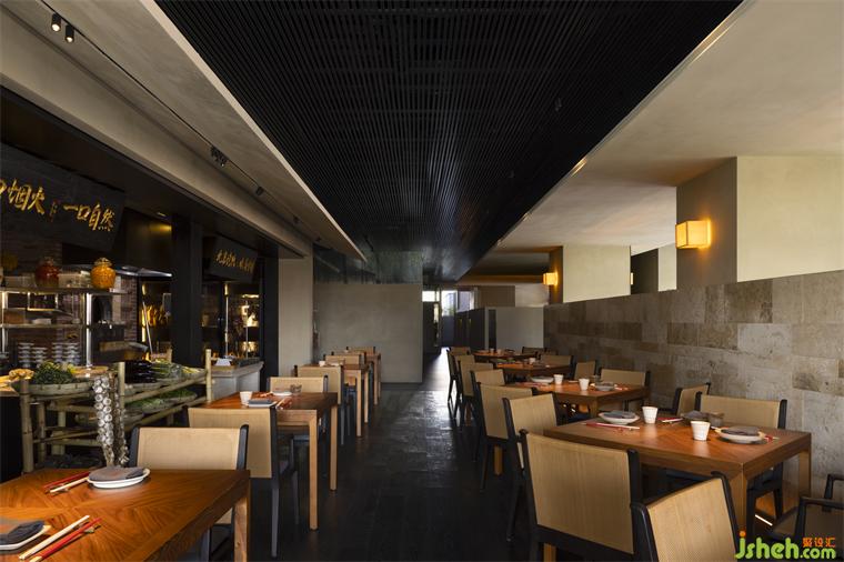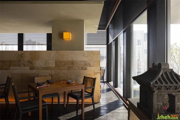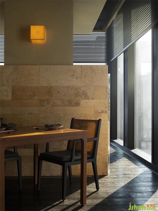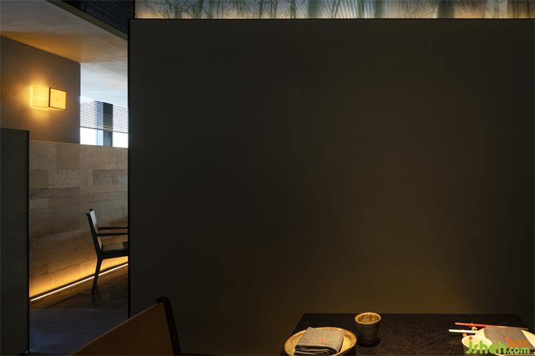 廊道的轉(zhuǎn)折關(guān)系,移步異景,竹子的元素通過玻璃進行延伸,餐廳設計讓用餐的主體空間隱藏于空間內(nèi)部,遠處的餐廳氛圍讓人產(chǎn)生更加強烈的求知愿望,狹小的廊道讓空間產(chǎn)生強烈的神秘色彩,以小見大的空間邏輯,讓空間的窺探感感覺強烈,一種不經(jīng)意的設計邏輯在空間中不斷的強調(diào)與重復,形成了一種隱晦的空間語境。