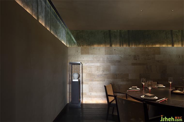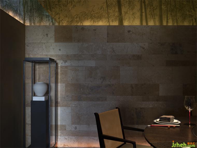 東方情緒,向往自然與文化,商場(chǎng)的空間環(huán)境讓整體的環(huán)境有所缺失,錯(cuò)位的高墻與植物有效的營(yíng)造了空間的戶外延伸感,形成了一種正確的錯(cuò)覺,舊物在空間中以一種低調(diào)的姿態(tài),安靜的融入空間中,不爭(zhēng)不搶,與空間、食物等事件互相包容,餐廳設(shè)計(jì)營(yíng)造一個(gè)友好的空間場(chǎng)域。