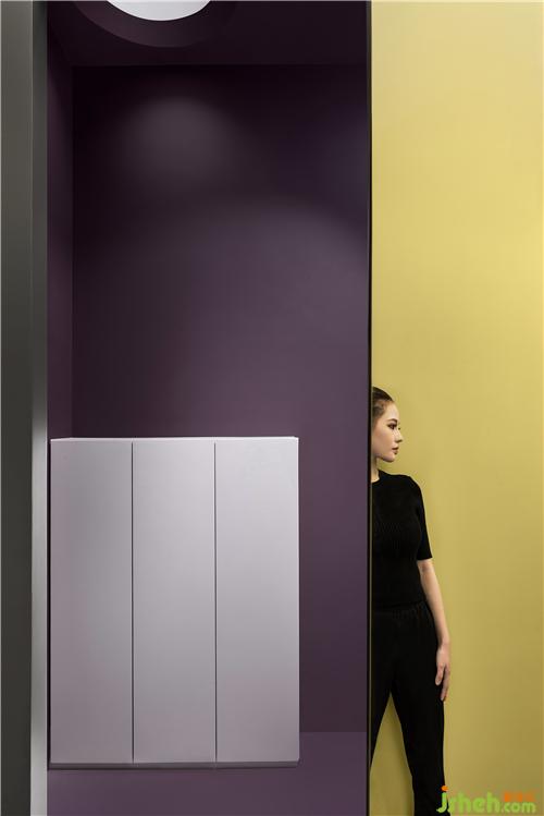 在用色細(xì)節(jié)上進(jìn)行細(xì)膩拿捏,以平衡與中和代替了強(qiáng)對比。高飽和的色彩抹上一層灰度,淡然而詩意,讓整面墻的大色塊不致空間絲毫局促或壓抑,反而平添溫暖親和的質(zhì)感,在燈光的暈染下泛起五彩漣漪。