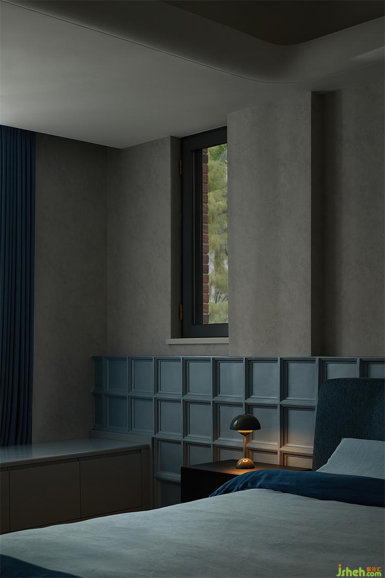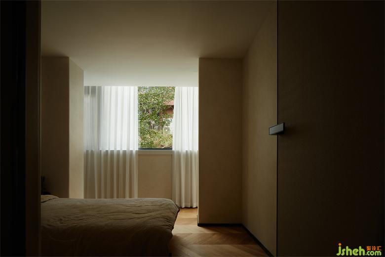 在簡潔的空間內(nèi),設(shè)計(jì)師預(yù)留大面積的窗景,使屋外的自然景觀成為室內(nèi)不可或缺的一部分,微風(fēng)拂拂,斑駁的樹影隨著日出日落在室內(nèi)形成不同的畫作,花園疊墅設(shè)計(jì)模糊了建筑、空間、自然、與生活的界限。坐在書桌前,仿佛伸手就能觸碰綠葉。