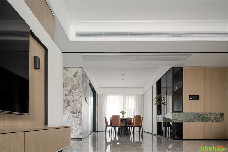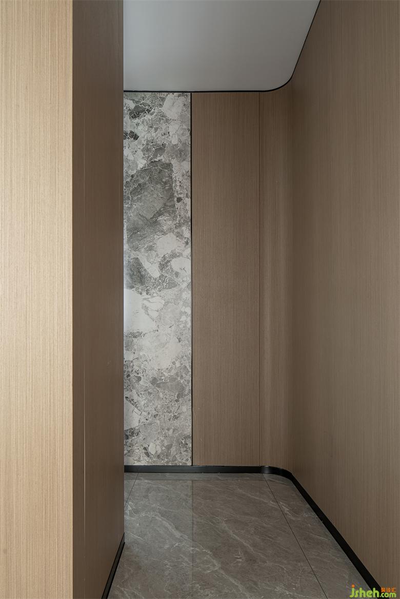 The simple and elegant log color is an important medium for communicating the movement of the space, and it can be widely used in the space. Standing on the marble floor, it forms a very distinct visual contrast, a high degree of integration of modernity and nature, which is undoubtedly revealed with a low-key attitude.