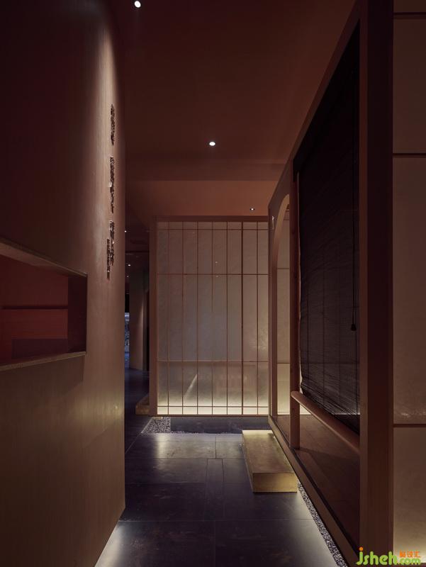 和室是日本傳統(tǒng)建筑,風(fēng)格簡(jiǎn)單,但細(xì)部設(shè)計(jì)卻是殫精竭慮。簡(jiǎn)單與復(fù)雜的對(duì)立統(tǒng)一,在虛飾繁雜的都市生活中,創(chuàng)造天地自然。故和室被稱為“隱居之所”,或“城市中的山野隱居處”,是通往冥想之路的路口。在項(xiàng)目中,充分發(fā)揮了和室建筑灰空間的對(duì)話作用,也制造了一些戲劇感的細(xì)節(jié)。
