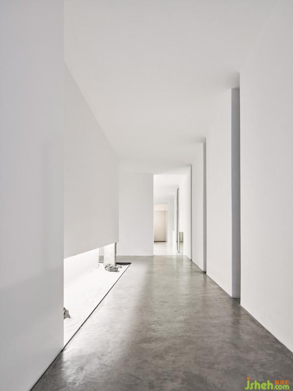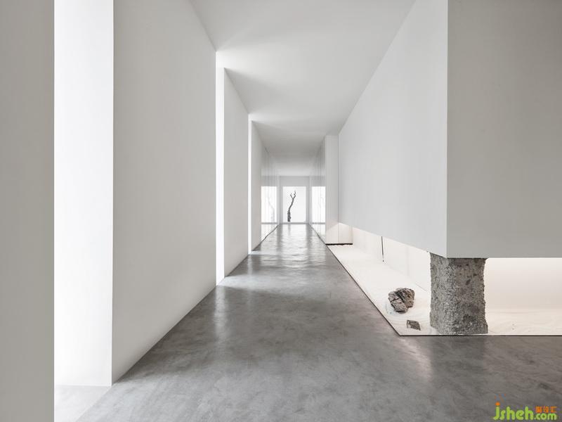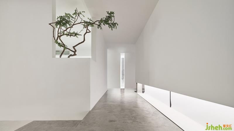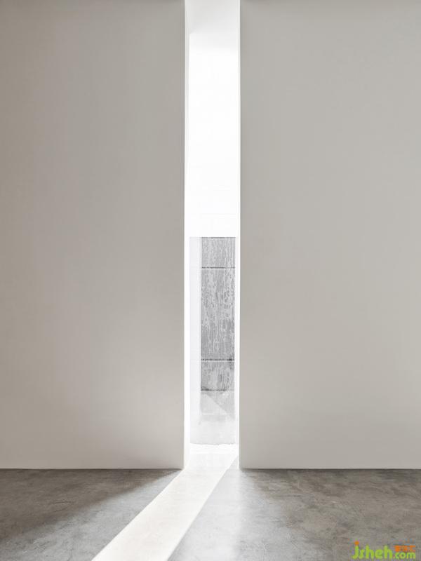 我們的空間表達(dá),可以概括為“用建筑的語(yǔ)言設(shè)計(jì)空間”和“明暗、線面對(duì)話(huà)”,進(jìn)門(mén)和走道就是最好的力證。僅靠單單一堵白墻,就能給人以犀利震撼的感受。我們還在走道里反復(fù)刻畫(huà)了不停變化的墻體關(guān)系。讓“自然界最便宜也是最寶貴的光”自如穿梭,而光源埋伏其中,“見(jiàn)光不見(jiàn)源”,空靈多變。在我們看來(lái),沒(méi)有比這對(duì)自然更好的禮贊了。