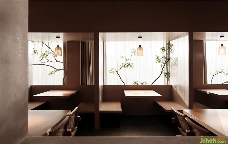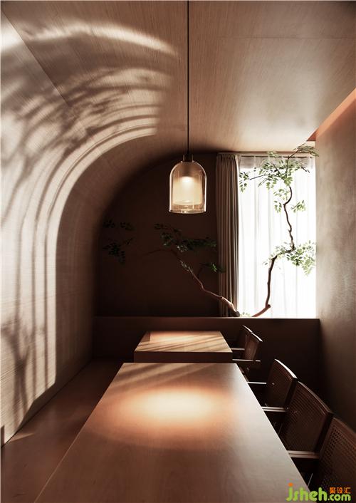 Light flows freely, changes between bright and shade, and dances beautifully. This also shows the rhythm of space. Surrounded by geometric walls, if you only see a large area of solo color, it will make you a little nervous. But if the sparkling light and shadow are dancing in front of you, especially with the steam rising up from the hot food and the green and warm curtain at your sight, you will definitely feel comfortable and peaceful in your heart. Listen carefully and you may hear the sound of rustling. Don't be surprised because that is the melody of light.
