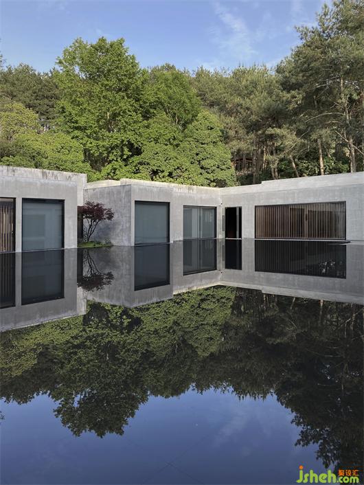 安卓梅達(dá)(Andromeda),取意天上的仙女星座,朦朧而美好,遙遠(yuǎn)而明媚。酒店依偎著如拙樸之翠的太平湖,在松林的掩映下儼然物外之境。遠(yuǎn)遠(yuǎn)看去,只一眼便動(dòng)了心弦,被那份清水混凝土與幾何結(jié)構(gòu)所呈現(xiàn)出的柔美撩撥著走近,種進(jìn)眸子里的卻是山水翠色,倏然恍惚了來(lái)意。