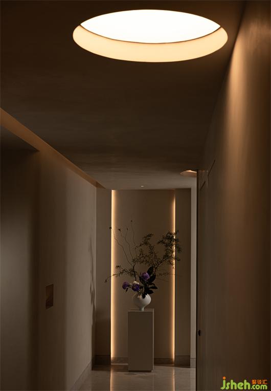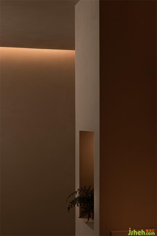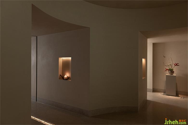 拱形天花板,米色石材平頂?shù)?,呈現(xiàn)出幾何本質(zhì)的美感之余,SPA設(shè)計(jì)整個(gè)空間顯得如此的空靈、靜謐??諝庵袕浡枞~香薰氣息,細(xì)細(xì)鳥鳴與流水聲無限回響。設(shè)計(jì)的用心之處,正是調(diào)動了視覺、嗅覺、聽覺、觸覺等感官,使人內(nèi)心平靜下來,深陷空間幽靜安寧之中。門徐徐關(guān)上的剎那,實(shí)現(xiàn)自身五感的覺醒。
